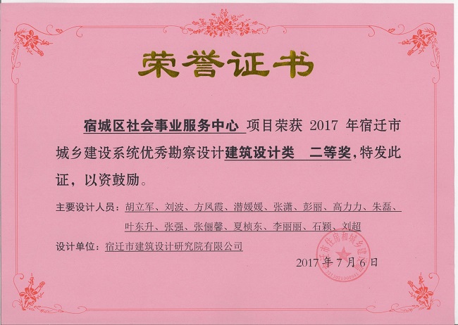 1、宿城區(qū)社會事業(yè)服務中心項目中獲建筑設計類二等獎